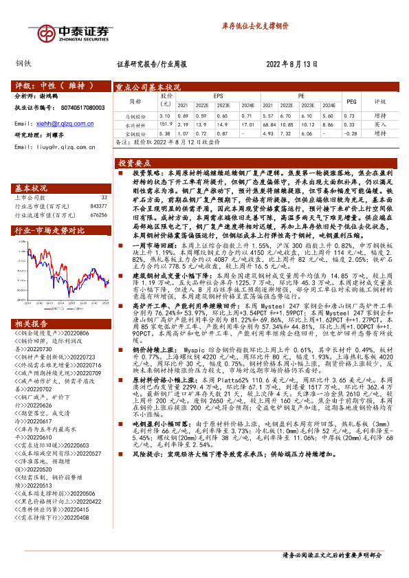 【中泰证券】【20220813】20220813-中泰证券-钢铁行业周报:库存低位去化支撑钢价-11页