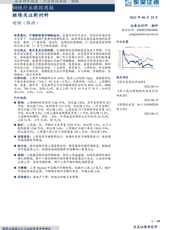 【东吴证券】【20220829】20220829-东吴证券-钢铁行业跟踪周报:继续关注新材料-18页