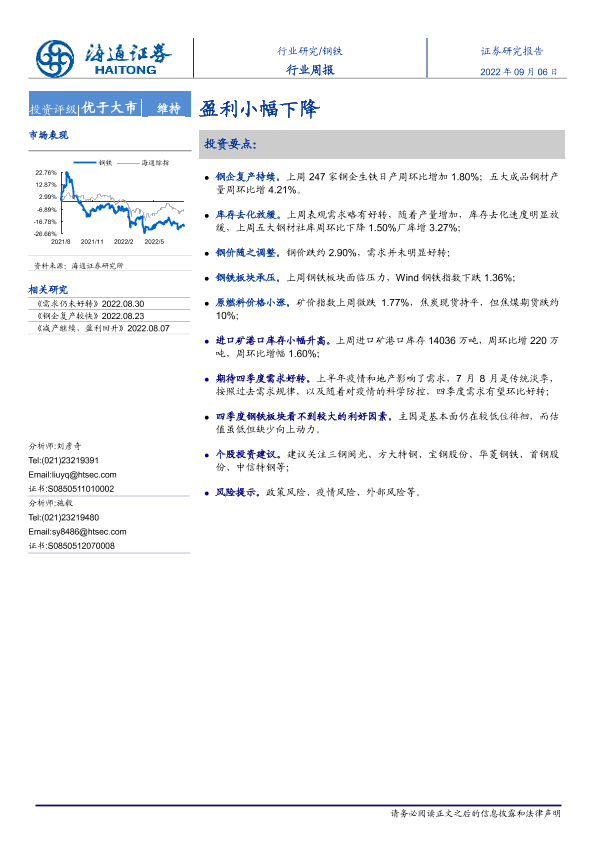 【海通证券】【20220906】20220906-海通证券-钢铁行业周报:盈利小幅下降-13页