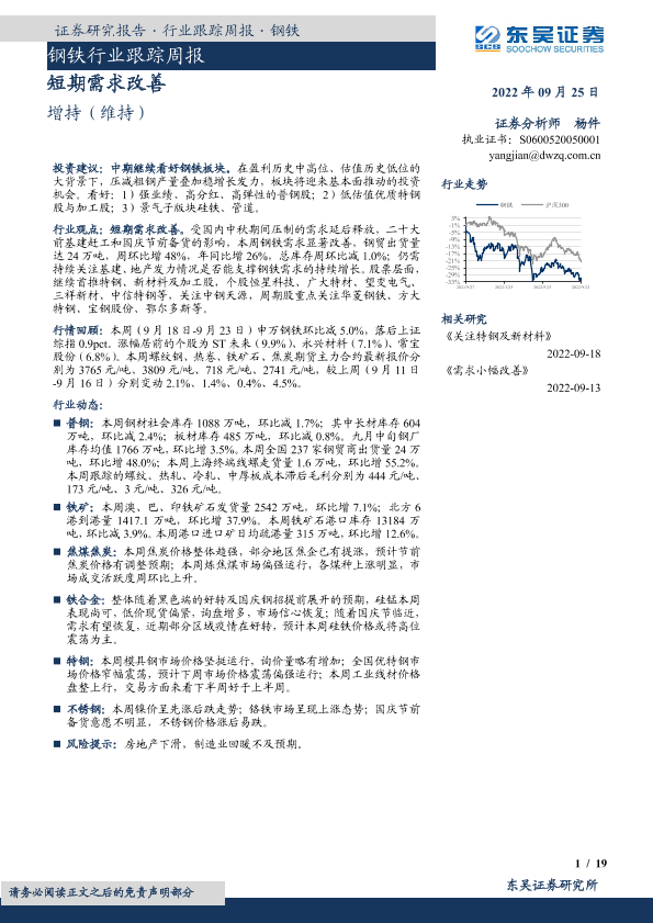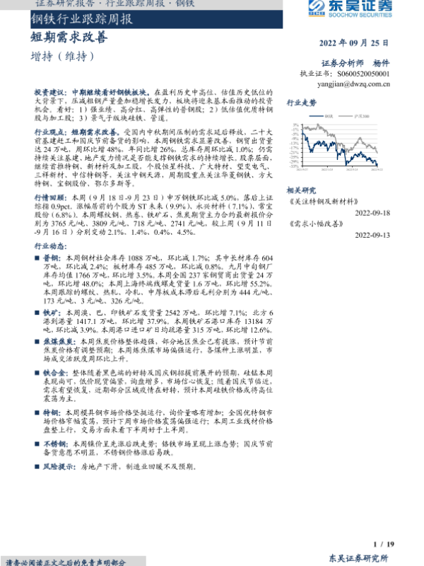 【东吴证券】【20220925】20220925-东吴证券-钢铁行业跟踪周报:短期需求改善-19页