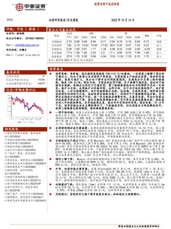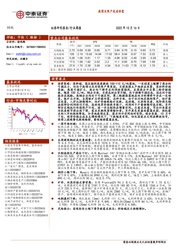 【中泰证券】【20221016】20221016-中泰证券-钢铁行业周报:疫情及限产扰动供需-12页