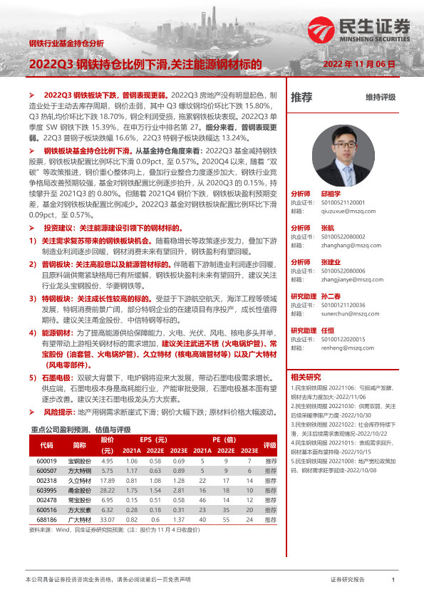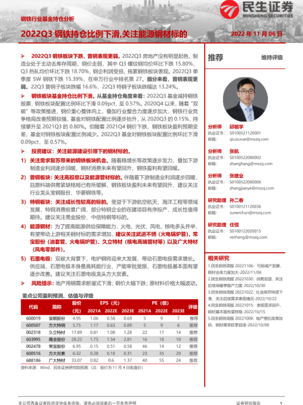 【民生证券】【20221106】2022Q3钢铁持仓比例下滑,关注能源钢材标的-10页