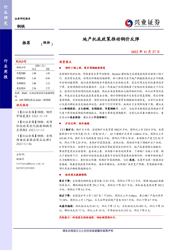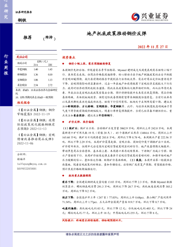 【兴业证券】【20221127】钢铁行业周报:地产托底政策推动钢价反弹-11页