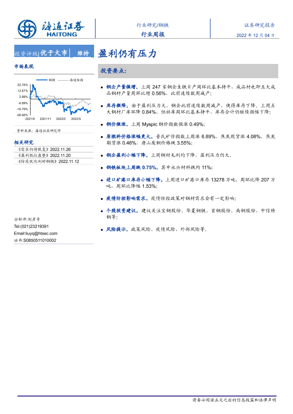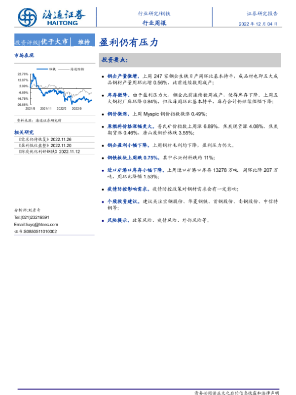 【海通证券】【20221204】20221204-海通证券-钢铁行业周报:盈利仍有压力-13页