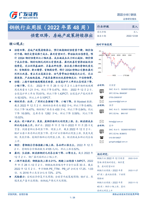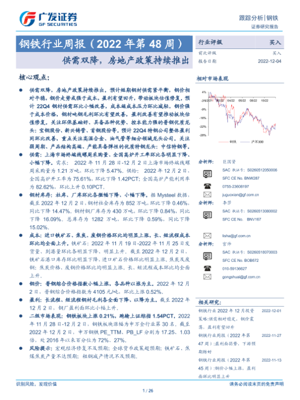 【广发证券】【20221204】20221204-广发证券-钢铁行业周报(2022年第48周):供需双降,房地产政策持续推出-26页
