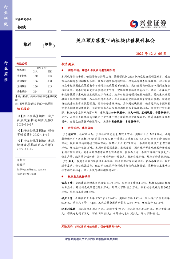 【兴业证券】【20221205】20221205-兴业证券-钢铁行业周报:关注预期修复下的板块估值提升机会-11页