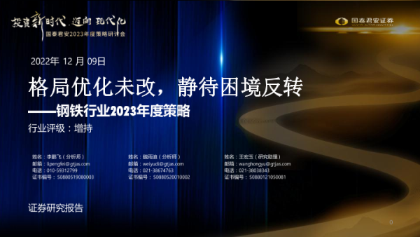 【国泰君安证券】【20221209】钢铁行业2023年度策略:格局优化未改,静待困境反转-62页