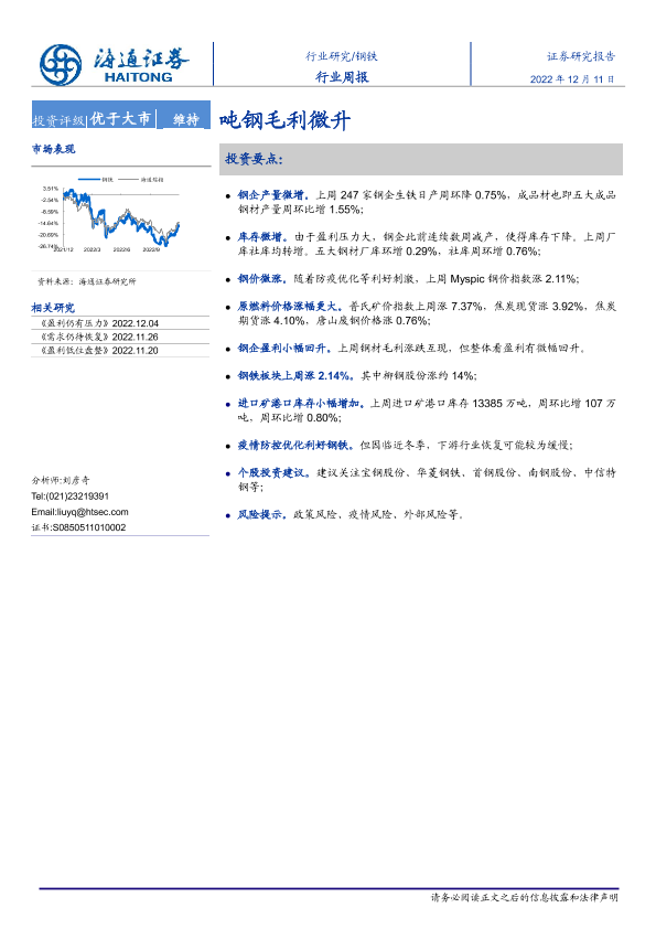 【海通证券】【20221211】20221211-海通证券-钢铁行业周报:吨钢毛利微升-13页