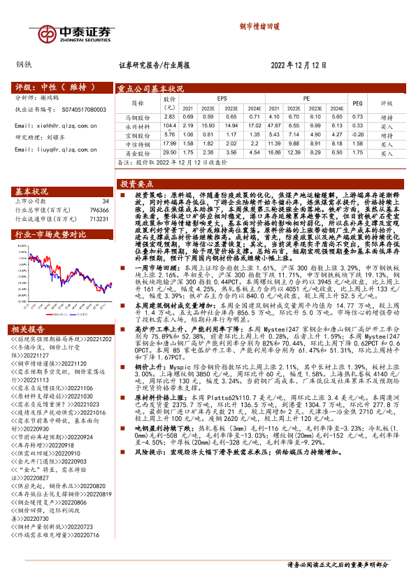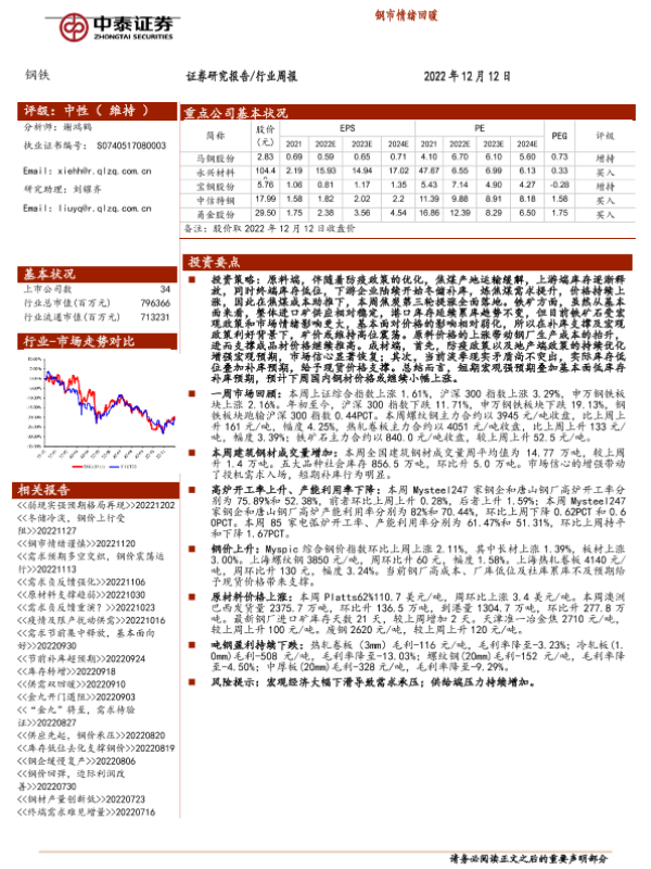 【中泰证券】【20221212】20221212-中泰证券-钢铁行业周报:钢市情绪回暖-13页