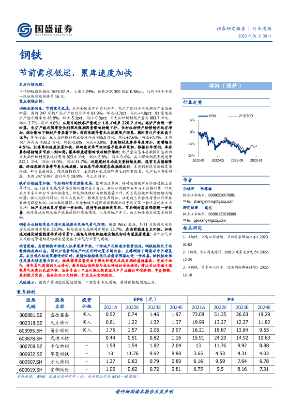 【国盛证券】【20230108】20230108-国盛证券-钢铁行业周报:节前需求低迷,累库速度加快-16页
