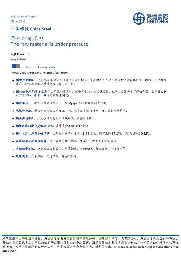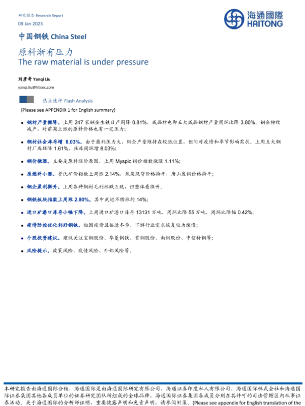 【海通国际】【20230108】中国钢铁:原料渐有压力-19页