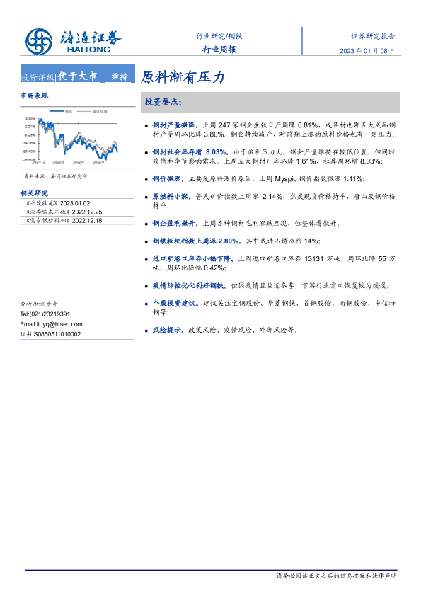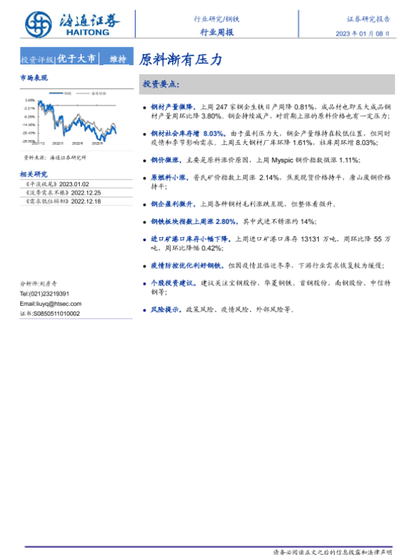 【海通证券】【20230108】20230108-海通证券-钢铁行业周报:原料渐有压力-13页
