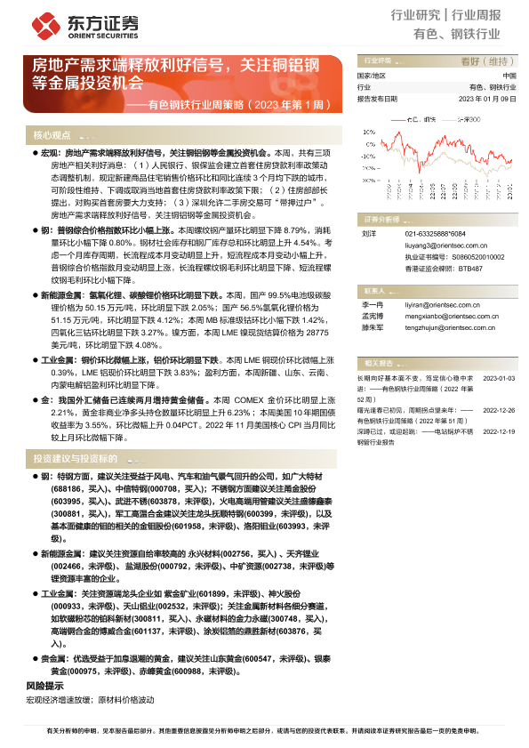 【东方证券】【20230109】20230109-东方证券-有色钢铁行业周策略(2023年第1周):房地产需求端释放利好信号,关注铜铝钢等金属投资机会-38页