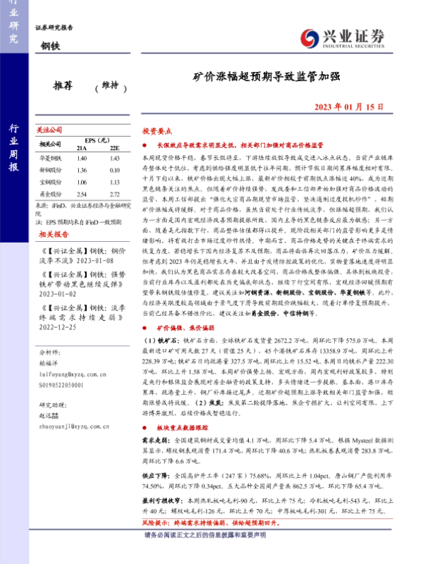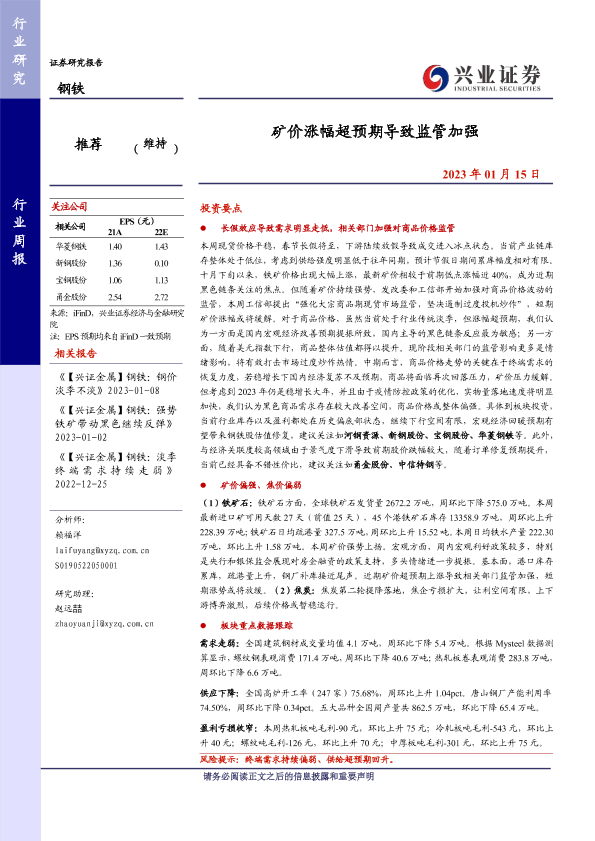 【兴业证券】【20230115】20230115-兴业证券-钢铁行业周报:矿价涨幅超预期导致监管加强-11页