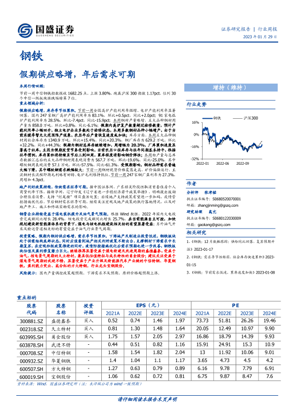 【国盛证券】【20230129】20230129-国盛证券-钢铁行业周报:假期供应略增,年后需求可期-16页