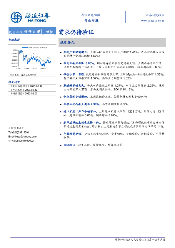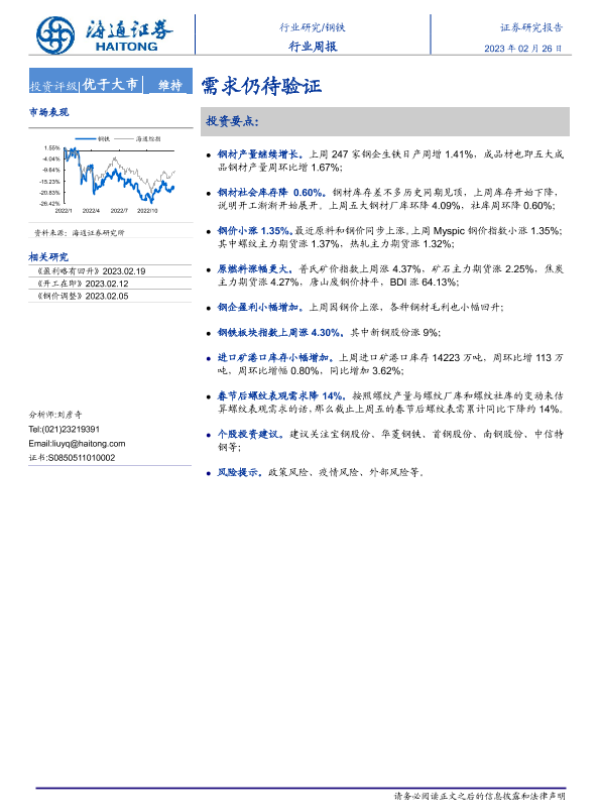 【海通证券】【20230226】20230226-海通证券-钢铁行业周报:需求仍待验证-13页