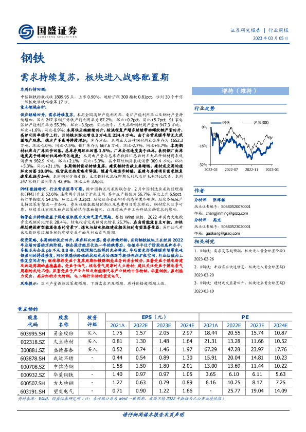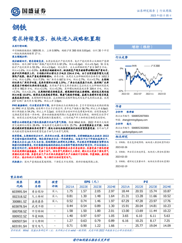 【国盛证券】【20230305】20230305-国盛证券-钢铁行业周报:需求持续复苏,板块进入战略配置期-16页