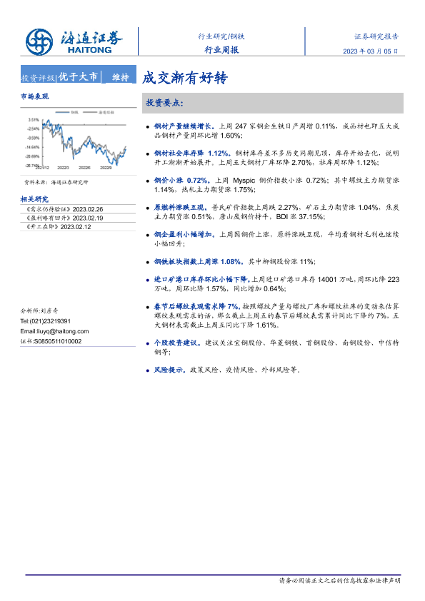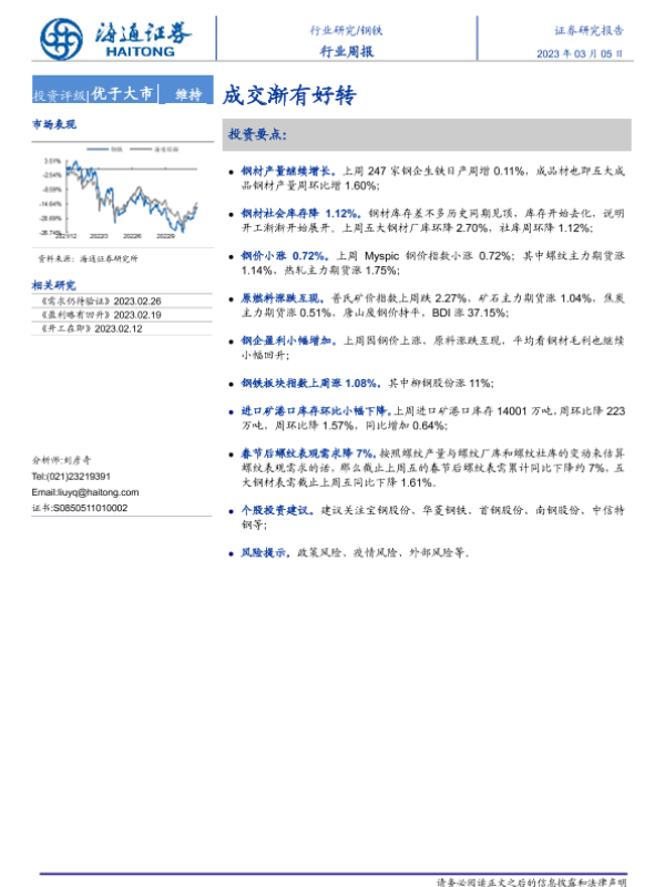 【海通证券】【20230305】20230305-海通证券-钢铁行业周报:成交渐有好转-13页
