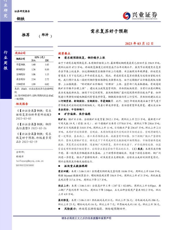 【兴业证券】【20230312】20230312-兴业证券-钢铁行业周报:需求复苏好于预期-11页