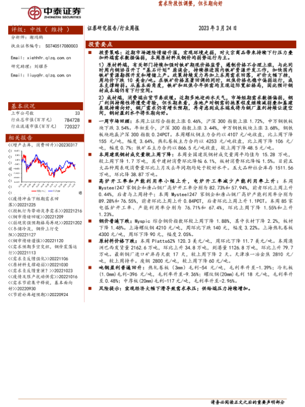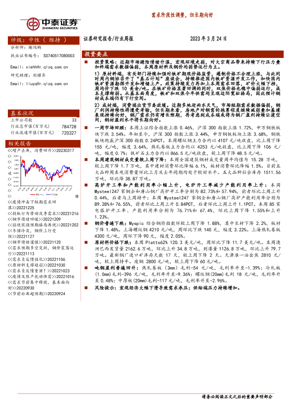 【中泰证券】【20230324】20230324-中泰证券-钢铁行业周报:需求阶段性调整,但长期向好-17页
