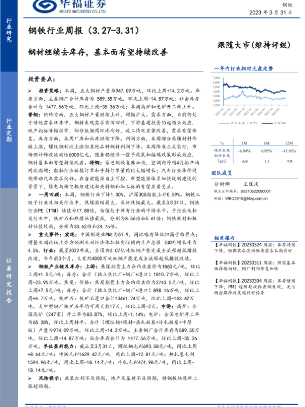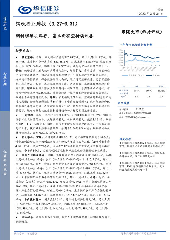【华福证券】【20230331】20230331-华福证券-钢铁行业周报:钢材继续去库存,基本面有望持续改善-17页