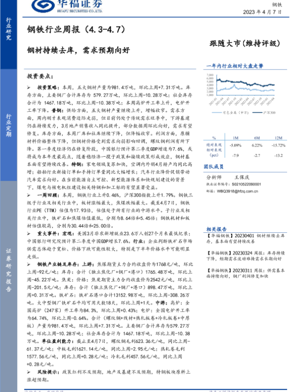 【华福证券】【20230407】20230407-华福证券-钢铁行业周报:钢材持续去库,需求预期向好-17页