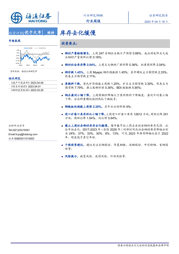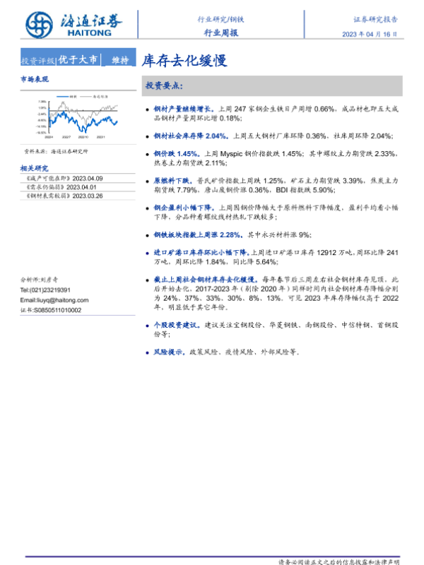 【海通证券】【20230416】20230416-海通证券-钢铁行业周报:库存去化缓慢-13页