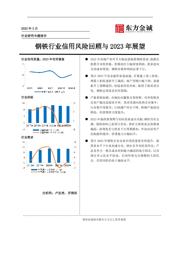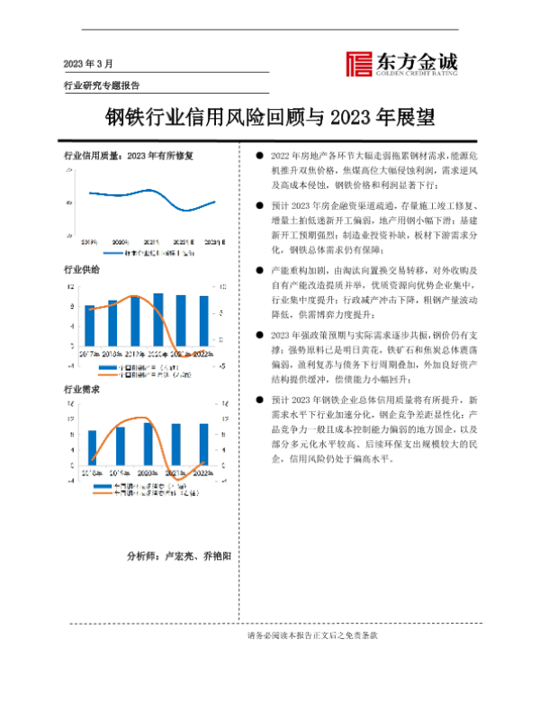 【东方金诚】【20230425】钢铁行业信用风险回顾与2023年展望-15页