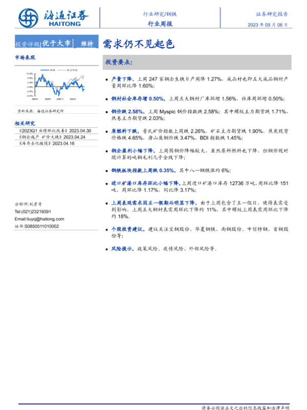 【海通证券】【20230506】20230506-海通证券-钢铁行业周报:需求仍不见起色-13页