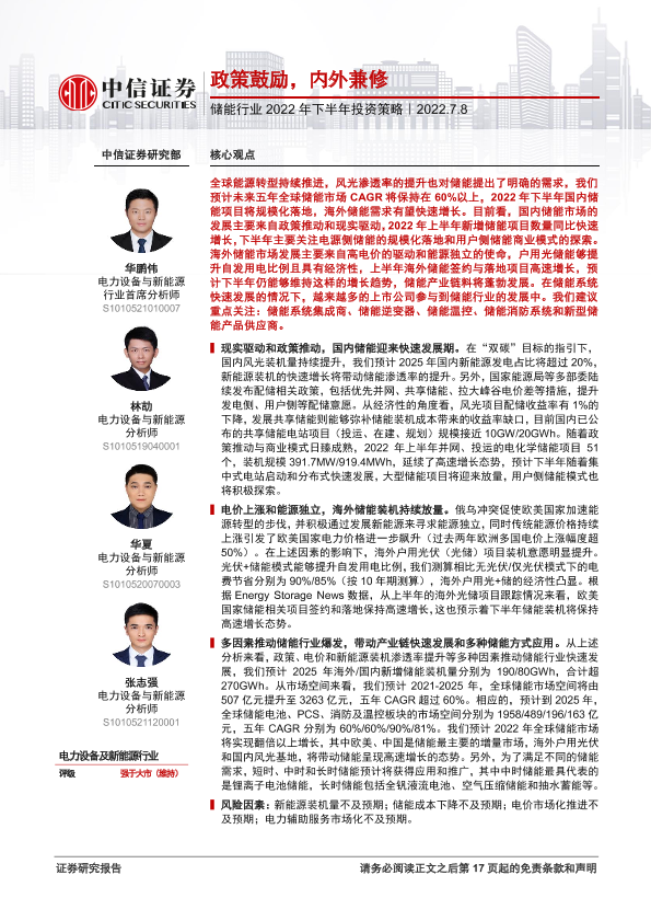 【中信证券】【20220708】储能行业2022年下半年投资策略:政策鼓励,内外兼修-18页