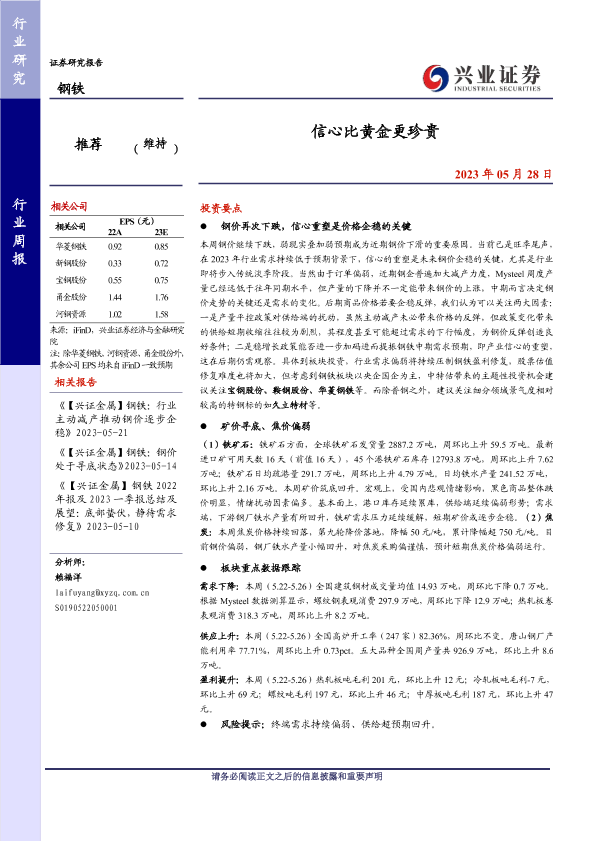 【兴业证券】【20230528】20230528-兴业证券-钢铁行业周报:信心比黄金更珍贵-11页