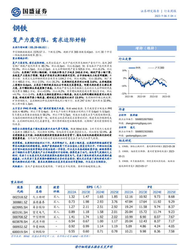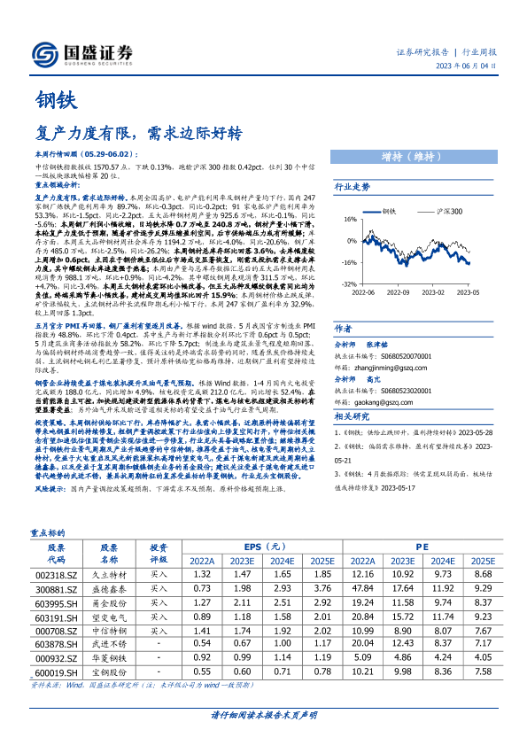 【国盛证券】【20230604】20230604-国盛证券-钢铁行业周报:复产力度有限,需求边际好转-16页