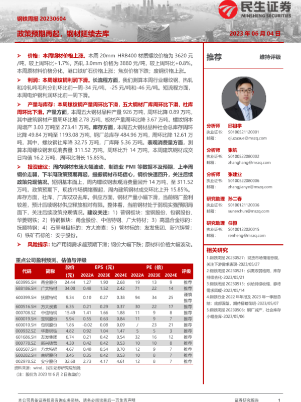 【民生证券】【20230604】20230604-民生证券-钢铁周报:政策预期再起,钢材延续去库-20页