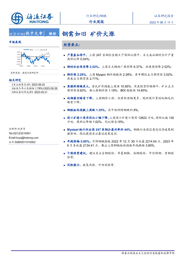 【海通证券】【20230611】20230611-海通证券-钢铁行业周报:钢需如旧 矿价大涨-14页