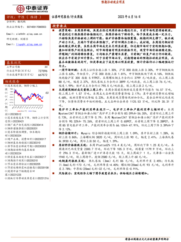 【中泰证券】【20230616】20230616-中泰证券-钢铁行业周报:预期拉动效应明显-15页