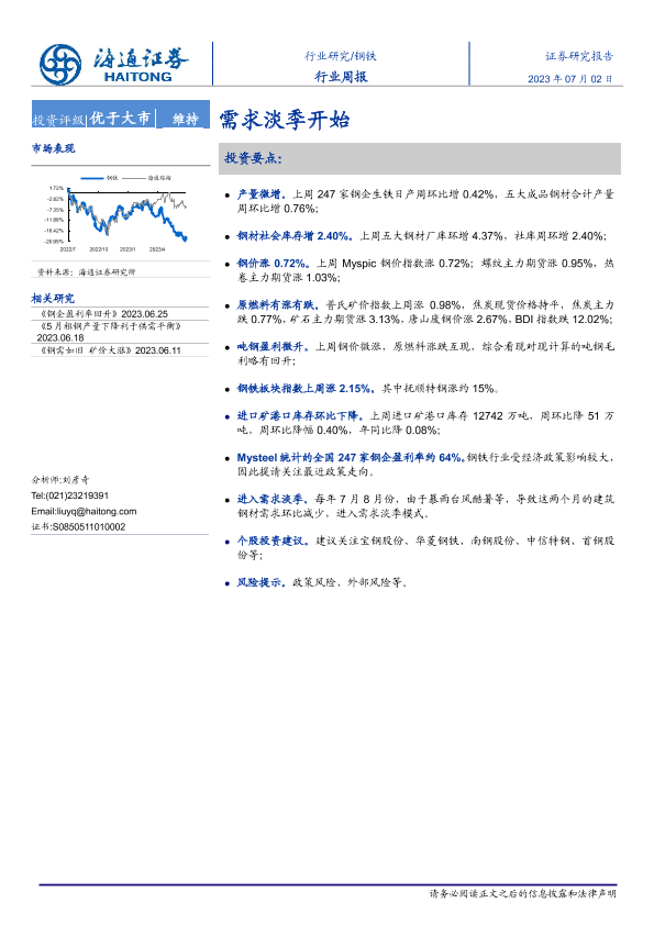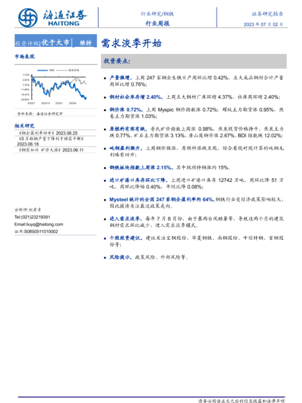 【海通证券】【20230702】20230702-海通证券-钢铁行业周报:需求淡季开始-14页