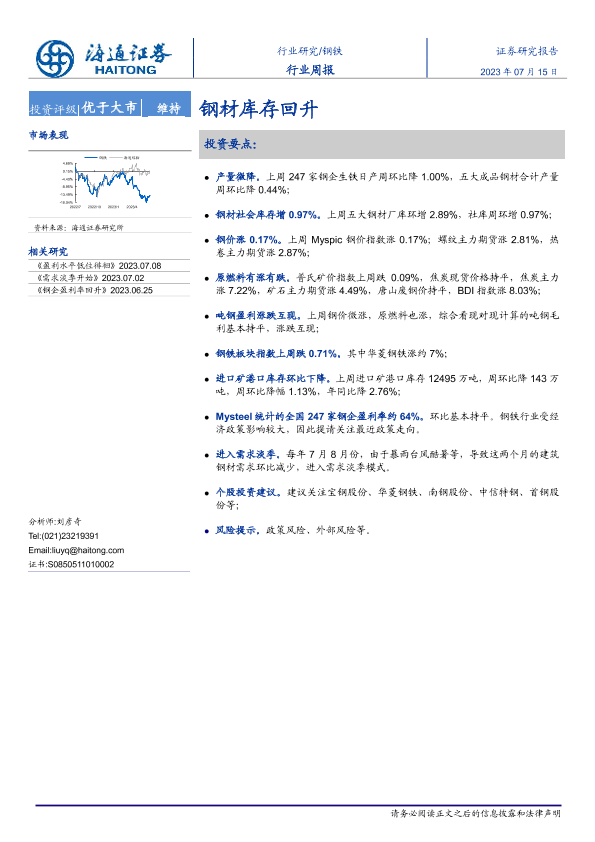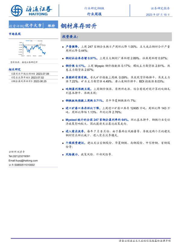 【海通证券】【20230715】20230715-海通证券-钢铁行业周报:钢材库存回升-14页
