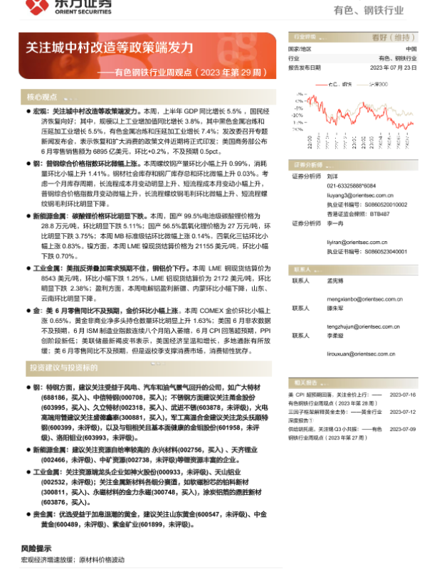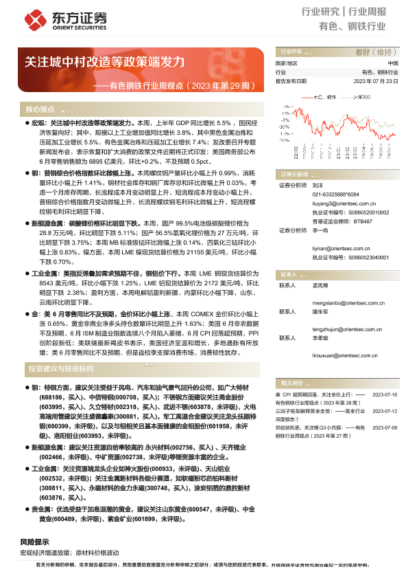 【东方证券】【20230723】20230723-东方证券-有色钢铁行业周观点(2023年第29周):关注城中村改造等政策端发力-39页