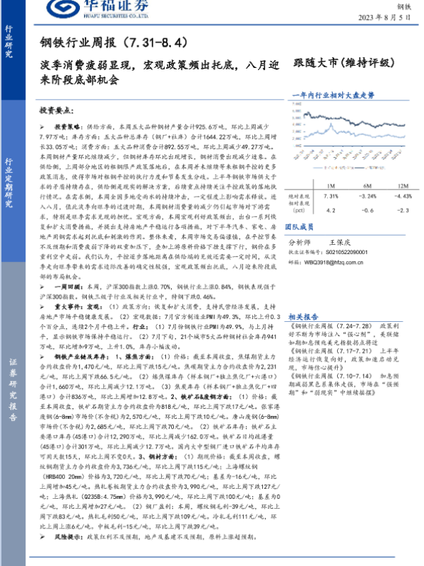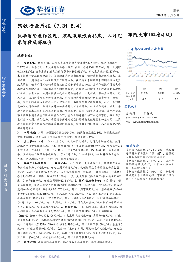 【华福证券】【20230805】20230805-华福证券-钢铁行业周报:淡季消费疲弱显现,宏观政策频出托底,八月迎来阶段底部机会-17页