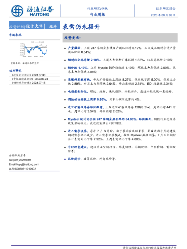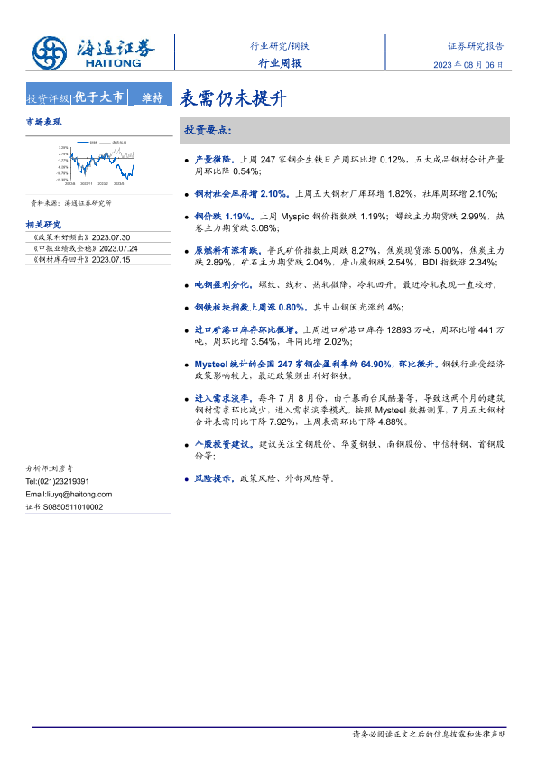 【海通证券】【20230806】20230806-海通证券-钢铁行业周报:表需仍未提升-14页