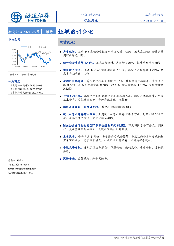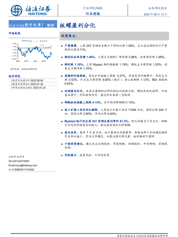 【海通证券】【20230813】20230813-海通证券-钢铁行业周报:板螺盈利分化-14页