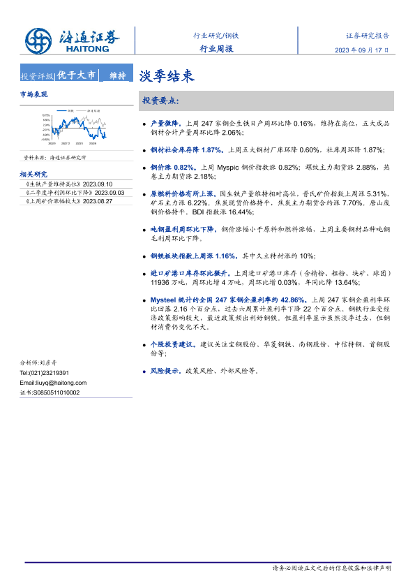 【海通证券】【20230917】20230917-海通证券-钢铁行业周报:淡季结束-15页