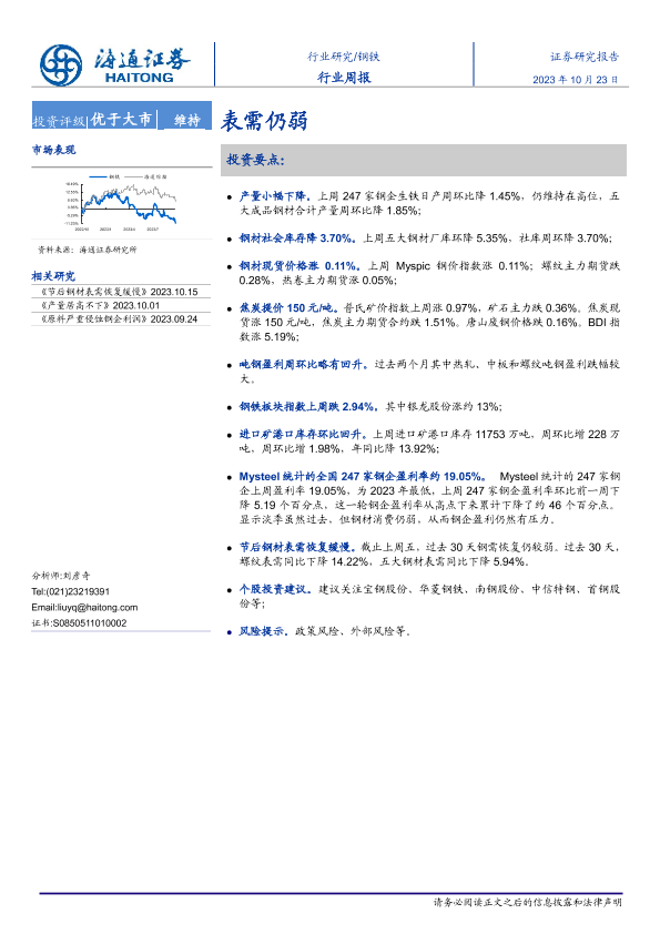 【海通证券】【20231023】20231023-海通证券-钢铁行业周报:表需仍弱-14页