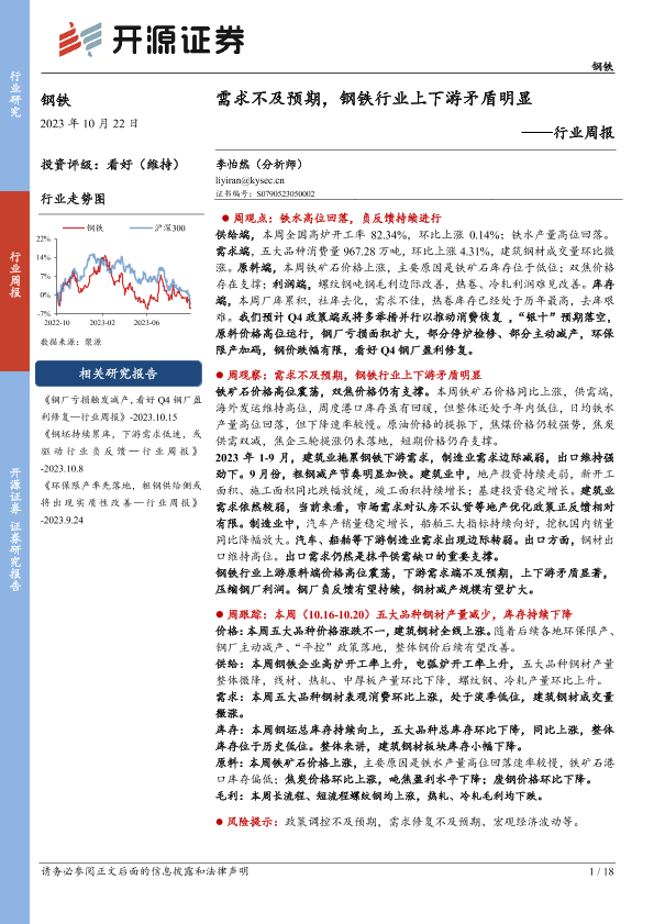 【开源证券】【20231022】20231022-开源证券-钢铁行业周报:需求不及预期,钢铁行业上下游矛盾明显-18页