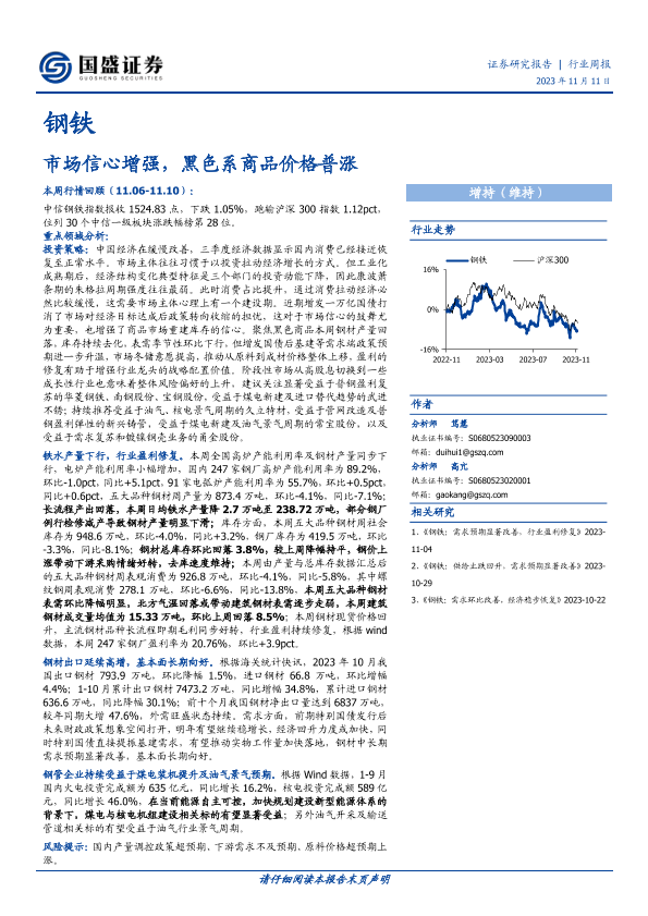 【国盛证券】【20231111】20231111-国盛证券-钢铁行业周报:市场信心增强,黑色系商品价格普涨-18页