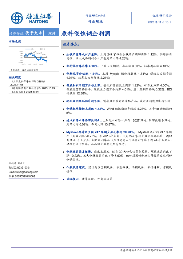 【海通证券】【20231113】20231113-海通证券-钢铁行业周报:原料侵蚀钢企利润-15页