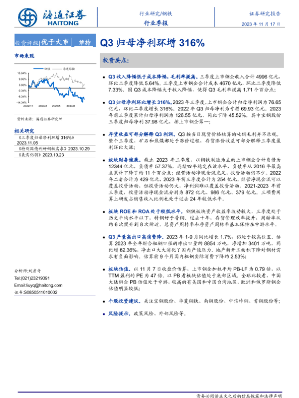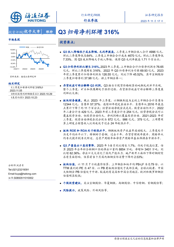 【海通证券】【20231117】20231117-海通证券-钢铁行业季报:Q3归母净利环增316%-16页