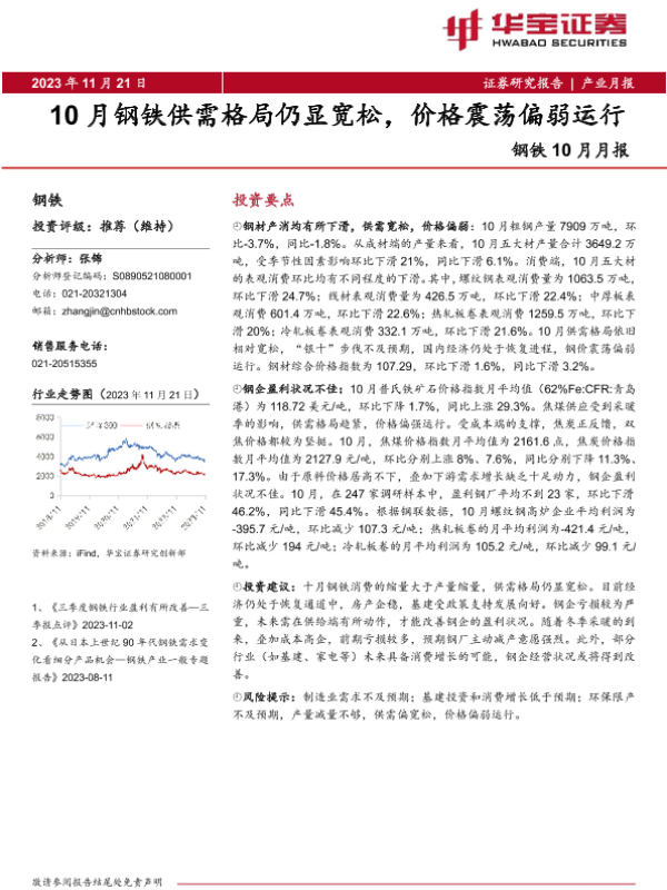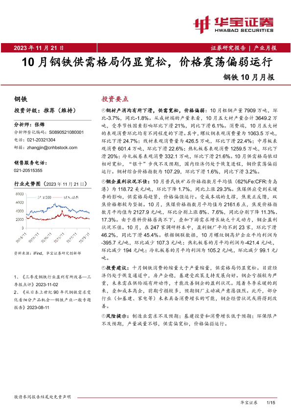 【华宝证券】【20231121】20231121-华宝证券-钢铁10月月报:10月钢铁供需格局仍显宽松,价格震荡偏弱运行-15页
