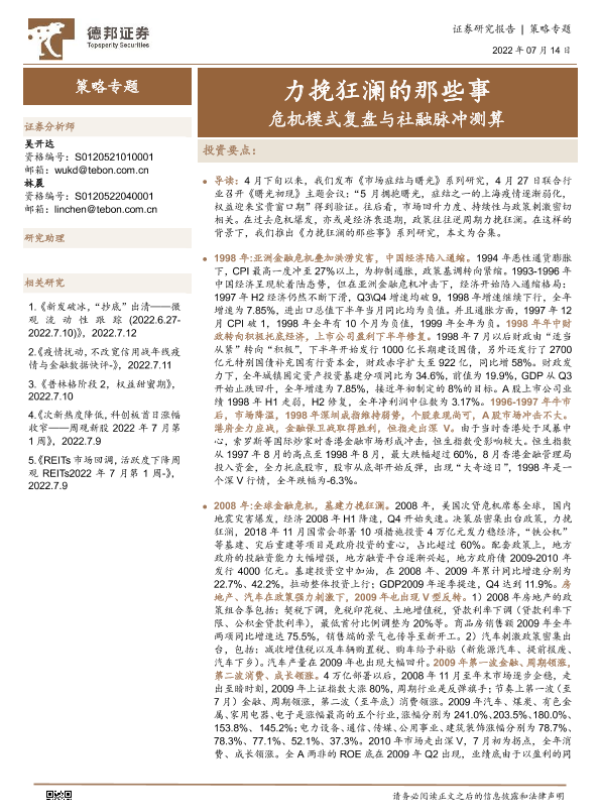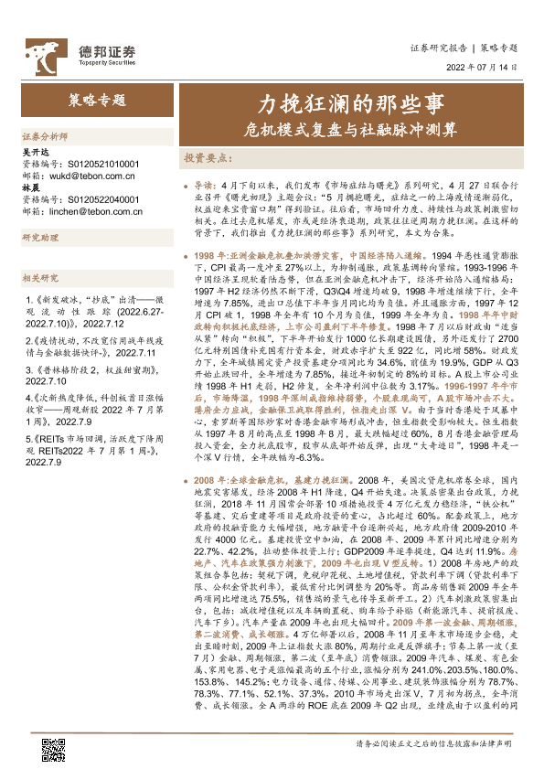 【德邦证券】【20220714】力挽狂澜的那些事:危机模式复盘与社融脉冲测算-46页