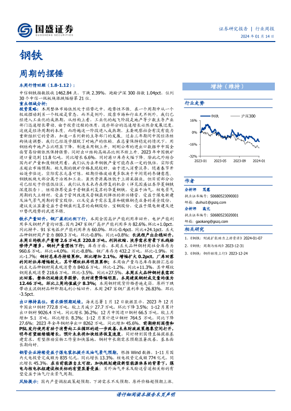 【国盛证券】【20240114】20240114-国盛证券-钢铁行业周报:周期的摆锤-17页